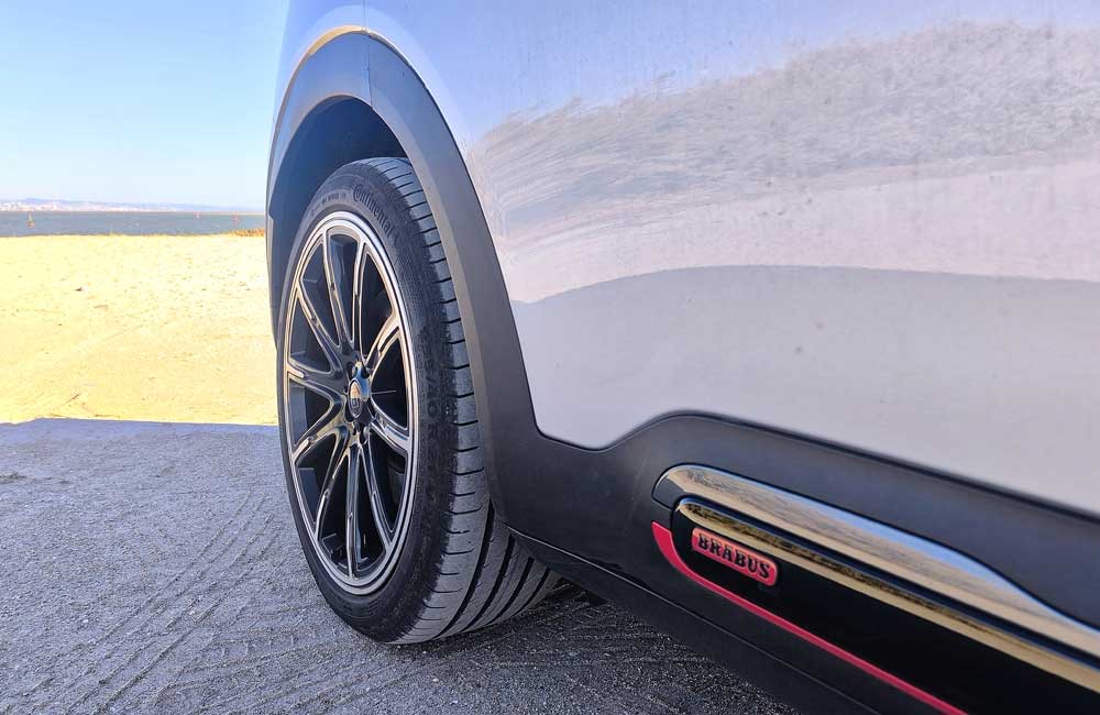 Isso também se verifica ao apreciar de perfil a totalidade dos 4.695mm do comprimento. Aqui salta à vista o ângulo de 90º para a retaguarda no final da linha do teto colocada a 1705mm de altura, e também os 197mm ao solo. O resultado é um estilo aventureiro, mas que se mescla de forma muito interessante com um lado mais desportivo na versão Brabus.