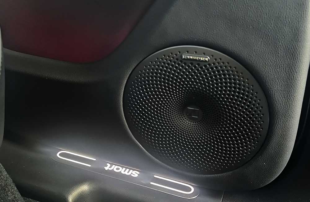 Ao nível dos melhores modelos de luxo (acima dos chamados ‘premium’) está o sistema de som Sennheiser do Smart #5 Brabus. A perfeição acústica proporcionada pela configuração com 20 saídas, um woofer iluminado ao centro do tablier e 1900 watts de potência, engrandecida pelo Dolby Atmos, garantem uma experiência sonora tremenda. Do melhor que é feito em toda a indústria automóvel.