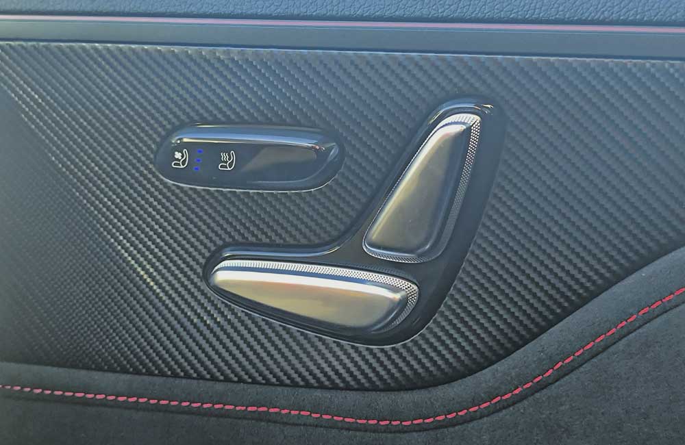 Um exemplo disso está logo nos bancos, que nos acolhem mais facilmente com o sistema Easy Entry. O sistema para controlo das regulações elétricas é idêntico ao que encontrámos no Mercedes EQE SUV, com botões embutidos nas portas. E estes bancos dianteiros, ambos com excelente apoio lombar regulável em quatro vias, contam com três níveis para personalizar a refrigeração e o aquecimento. E, um aparte, aquele logo com o “B” fica tão bem no descanso de cabeça do Smart #5 Brabus.