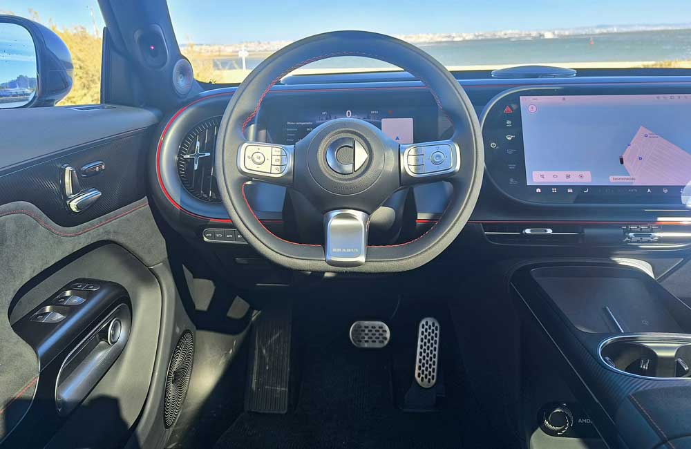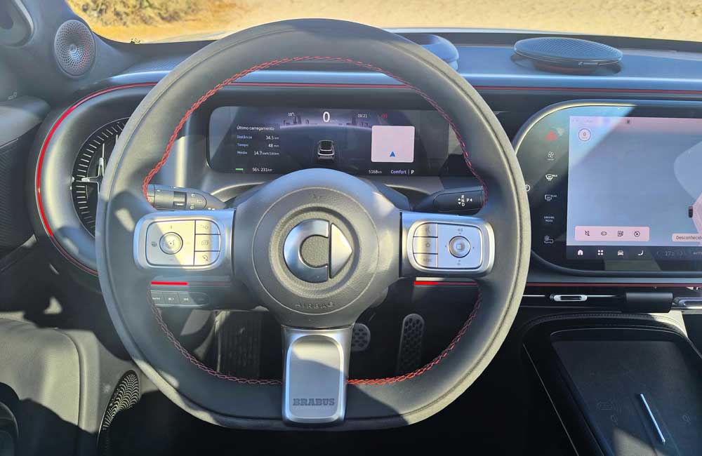 No interior, quem gosta de ter os controlos físicos com botões e com manetes junto ao volante pode considerar excessiva a concentração de todas as funções no ecrã. Aceito essa visão. No meu caso, já acostumado à forma como o sistema funciona depois de testar o #1 Brabus, não achei um problema.